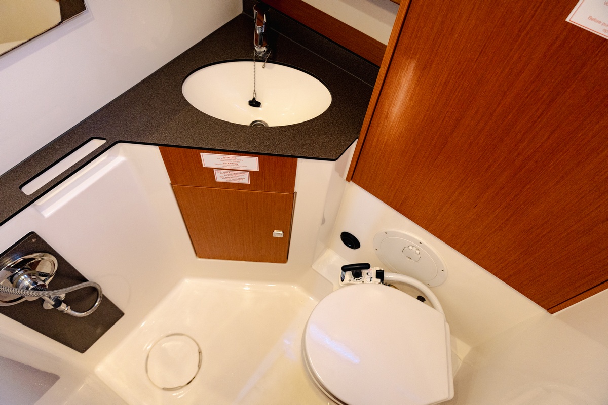 - Hot water boiler (heated by engine operation and when yacht is connected to power)