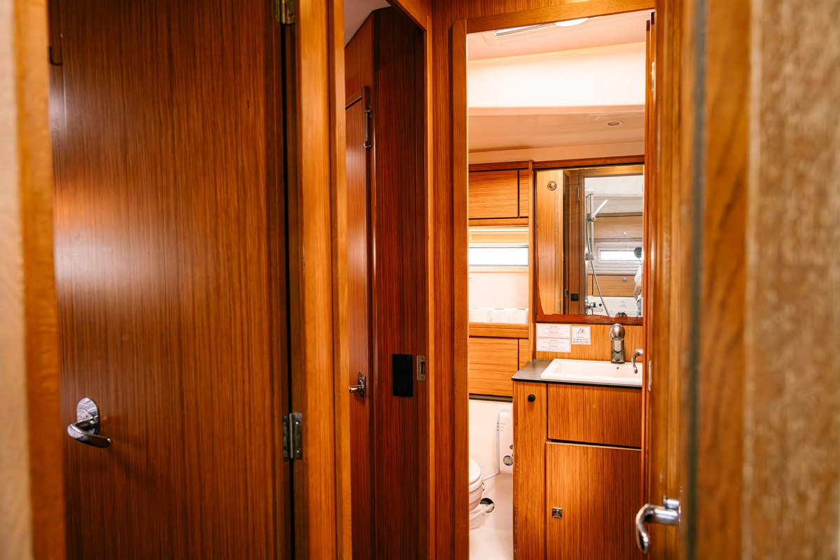- Siedziska oraz pokład kokpitu wyłożone drzewem tekowym