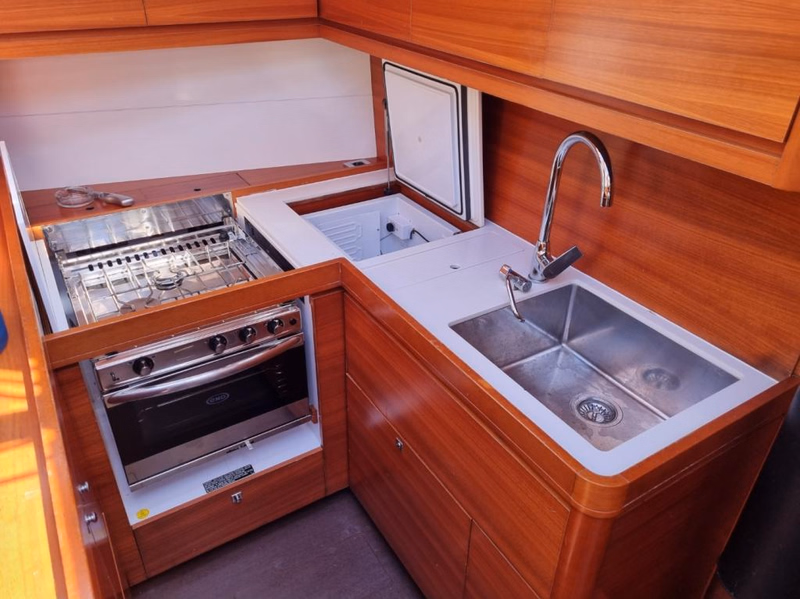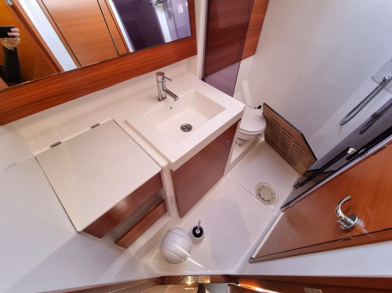 - Bojler z ciepłą woda (ogrzewany podczas pracy silnika i podłączeniu jachtu do prądu)
